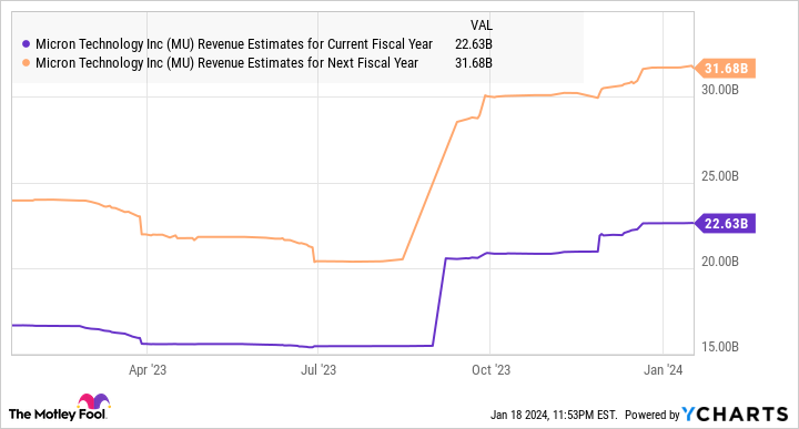게다가, 마이크론은 12월 실적 컨퍼런스 콜에서 HBM이 여러 엔비디아 AI 칩에 대한 자격 취득의 마지막 단계에 있다고 확인했습니다. 이 모든 것은 회사의 최고 성장이 2023 회계연도의 155억 달러에서 226억 달러로 급증하는 이유를 설명합니다.