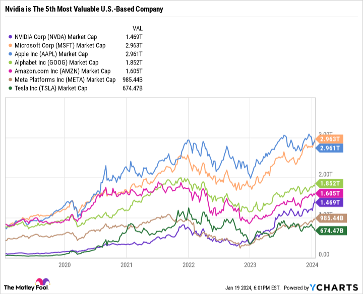 1월 23일은 주식 시장에 좋은 날이 되었습니다. S&P 500과 다우존스 산업평균지수는 사상 최고치로 마감했습니다. 마이크로소프트(MSFT -0.23%), 엔비디아(NVDA -0.95%), 메타플랫폼(META -0.24%) 등 '매그니피센트 세븐'의 세 종목도 사상 최고치로 마감했습니다. 나머지 네 개의 매그니피센트 종목은 애플, 알파벳, 아마존, 테슬라입니다.