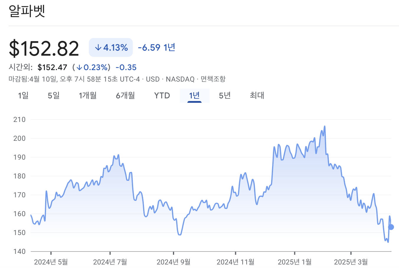 현재 주가: $155.21 (2025년 4월 10일 기준)