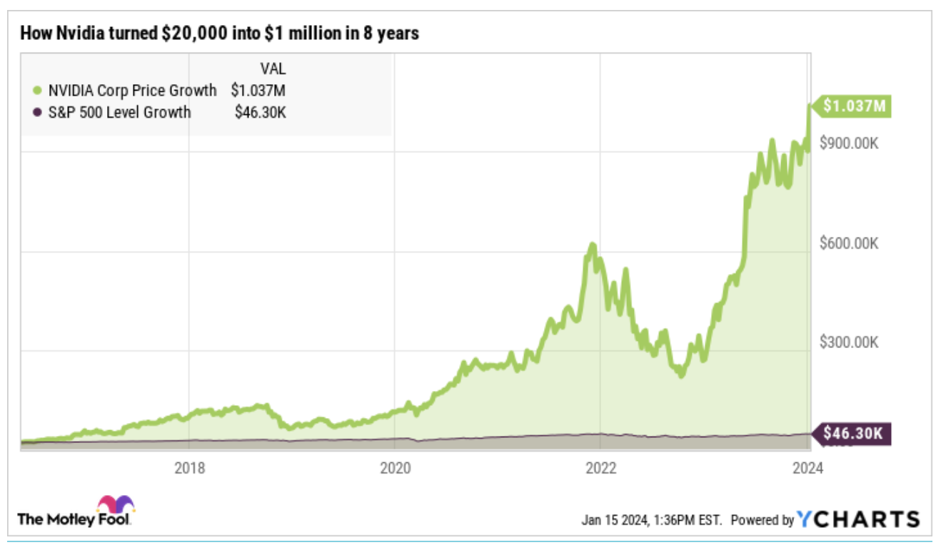 그렇다면 다음은 무엇일까요? 오늘 Nvidia의 2만 달러 규모의 강력한 입지를 확보했다고 가정해 보겠습니다. 그 투자로 백만 달러를 벌 수 있을까요?